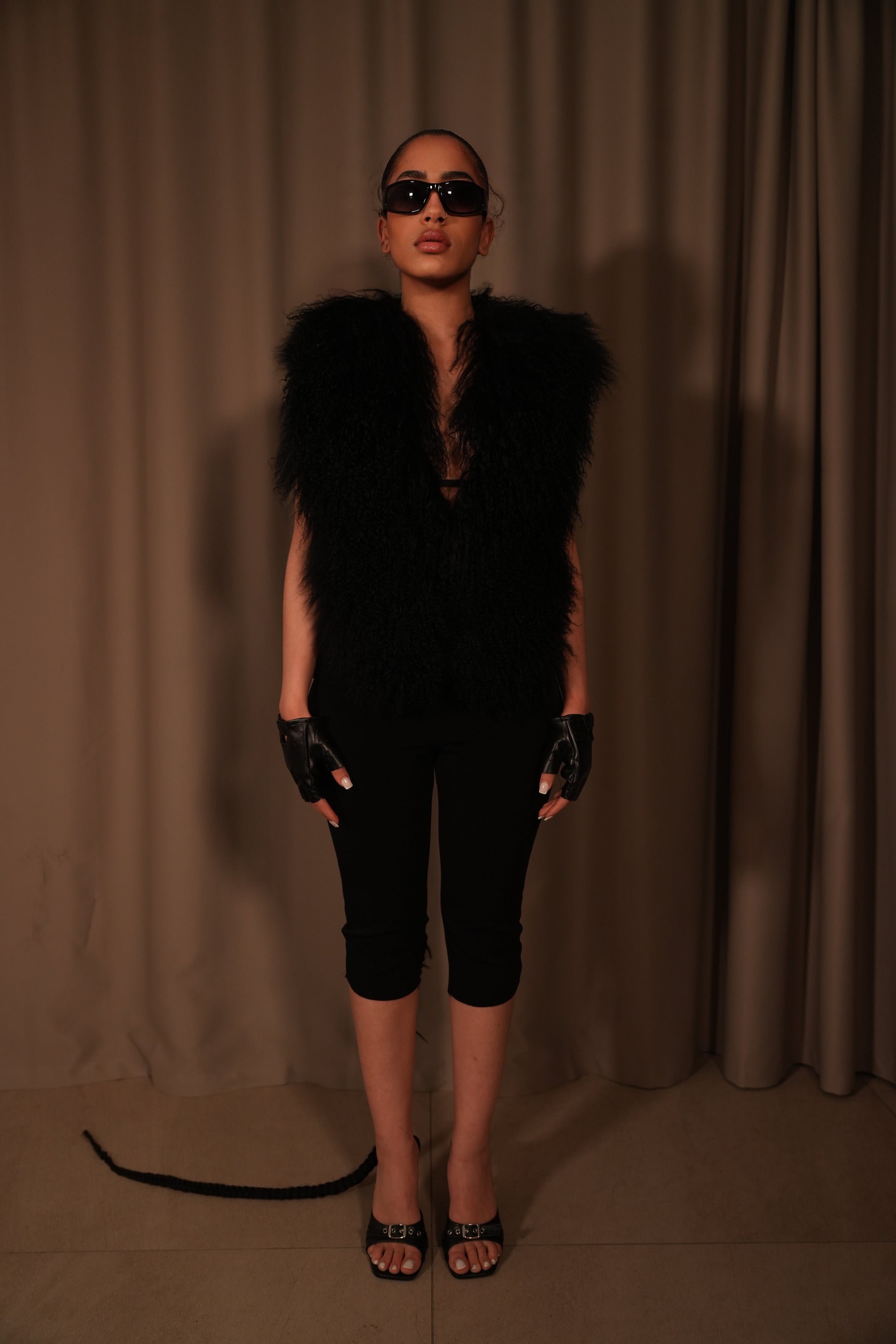 Le top MAYA est un modèle sans manches en véritable fourrure mongolienne, reconnu pour sa texture douce, volumineuse et naturellement aérienne.